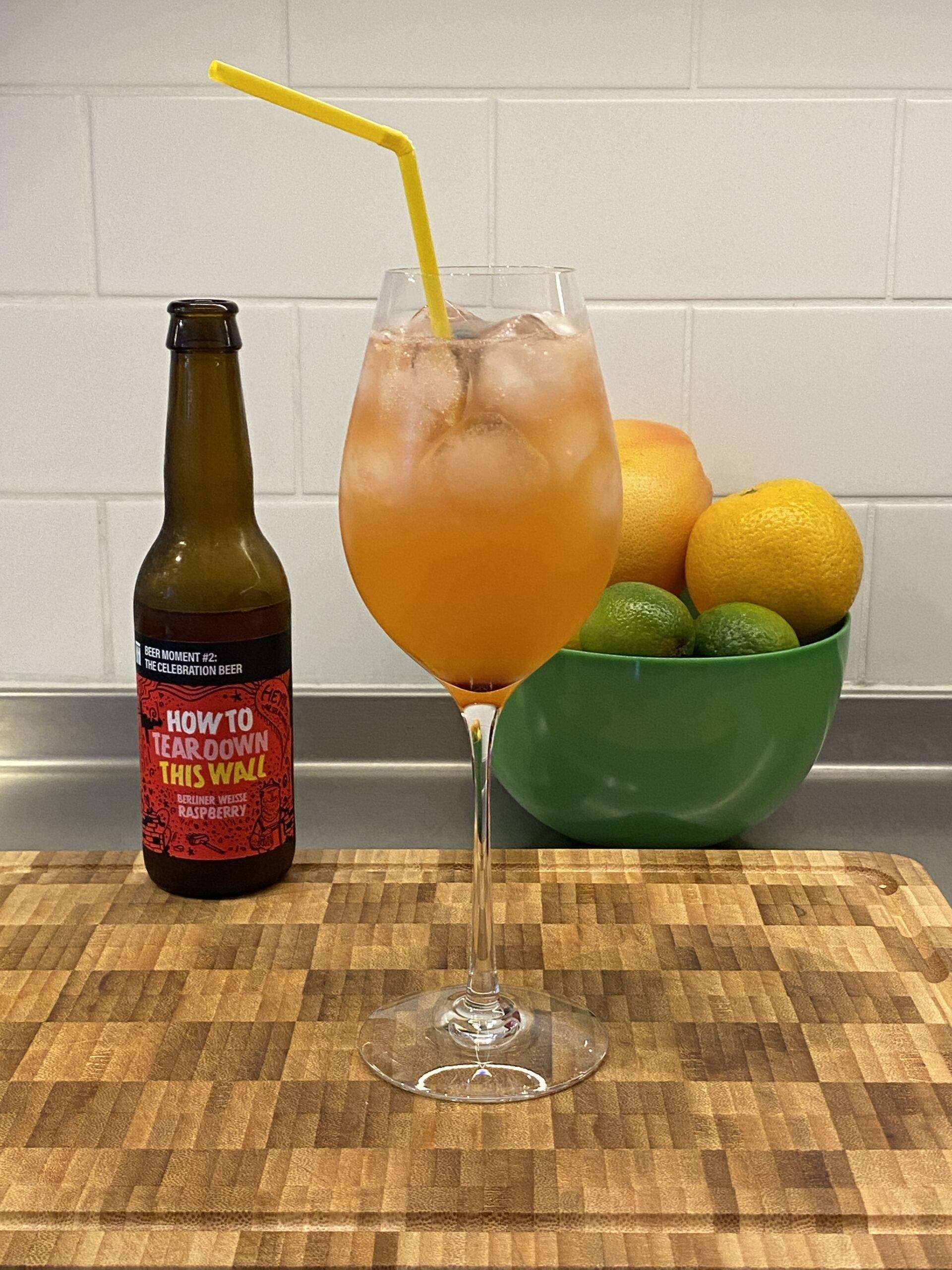 - Toppa med lika delar berliner weisse och passionfruktsjuice