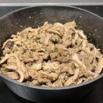 - "Hyvla" upp köttet i strimlor och lägg under folie för varmhållning.