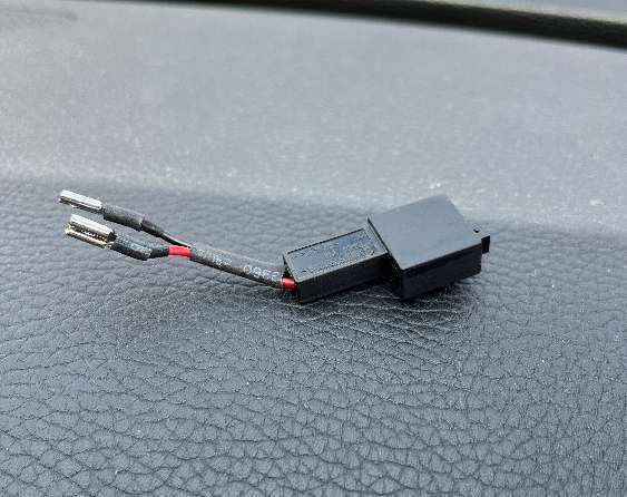 - Tryck fast kabeln från bilen på de frilagda stiften på nya solskärmen. Kom ihåg plus/minus till rätt stift.